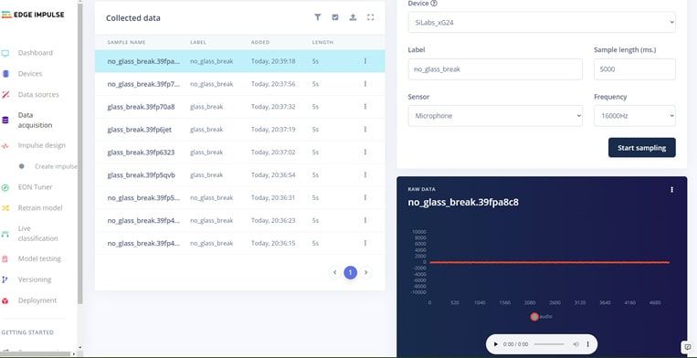 void handle_glassbreak_detection(): This function is triggered when the neural network sets the